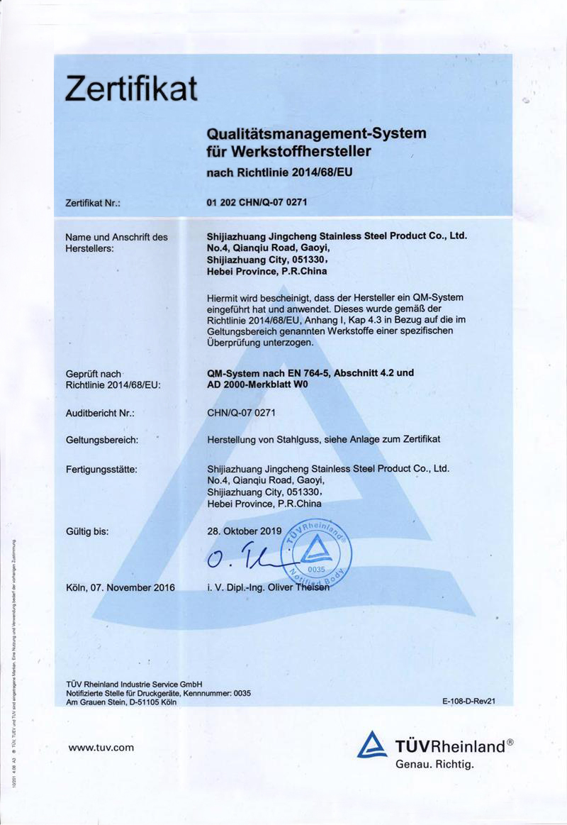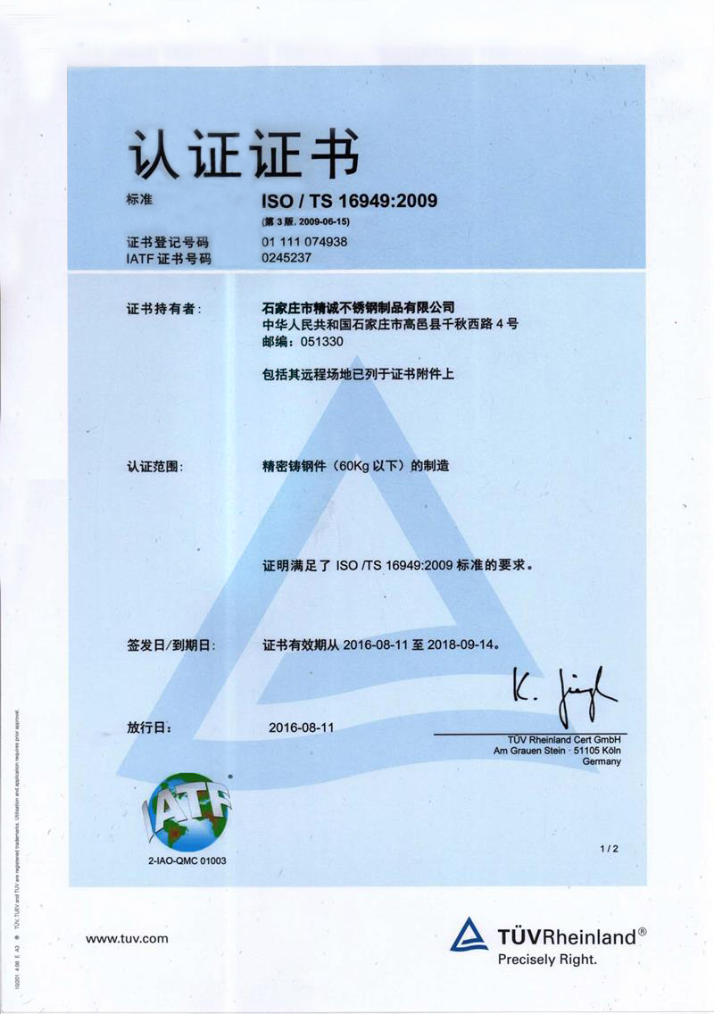 Shijiazhuang Jingcheng Stainless Steel Products Co., Ltd. is a professional precision casting enterprise. It mainly produces precision castings and processed products of stainless steel, alloy steel, low carbon steel and various special alloy materials.